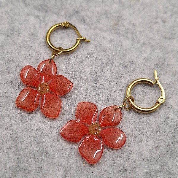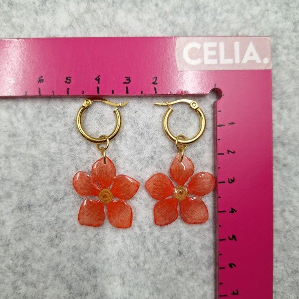 Material: Argollas de acero dorado y dije pintado a mano realizado sobre plástico retráctil y sellado con resina uv.
