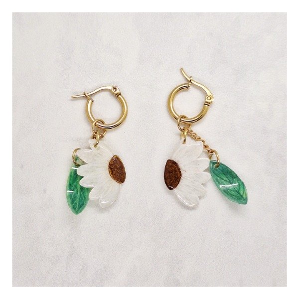 Material: Argollas de acero dorado y dije pintado a mano realizado sobre plástico retráctil y sellado con resina uv.