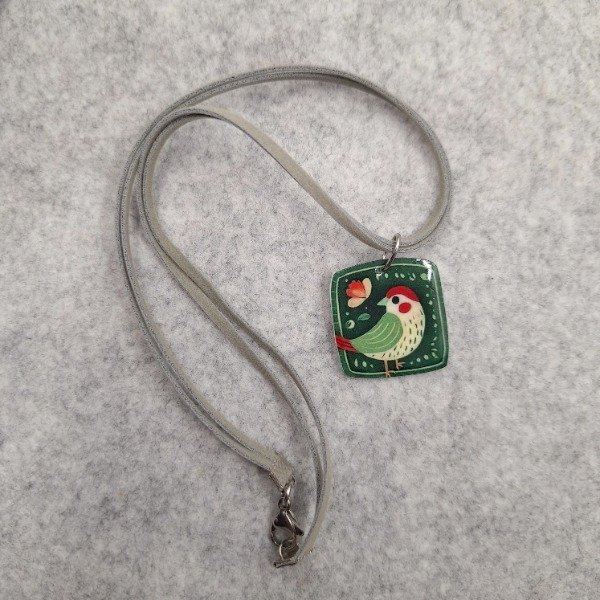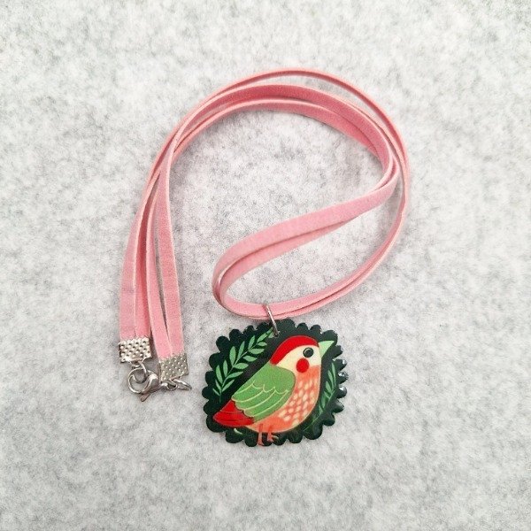 Collares elaborados con papel plástico retráctil y sellados con resina UV, lo que les brinda brillo, durabilidad y protección.